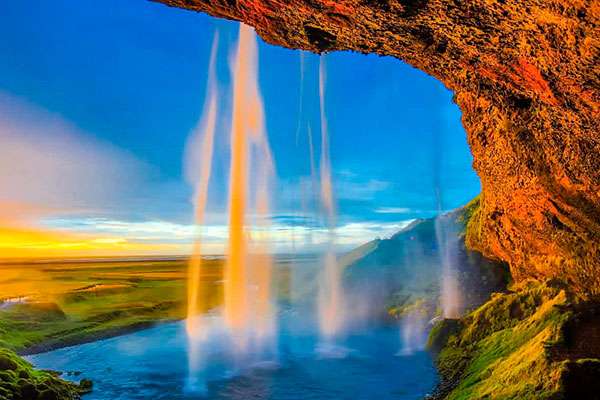 El viaje sigue hacia Hella, visitando el glaciar Mýrdalsjökull y las cascadas Skógafoss y Seljalandsfoss.