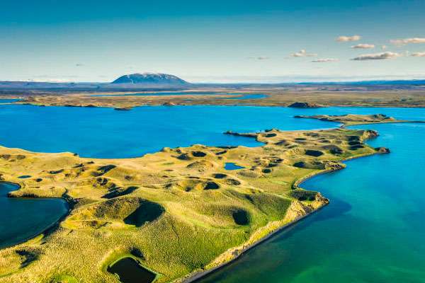 Después del desayuno, viajarás a Egilstadir, visitando Goðafoss y Dimmuborgir en el camino.